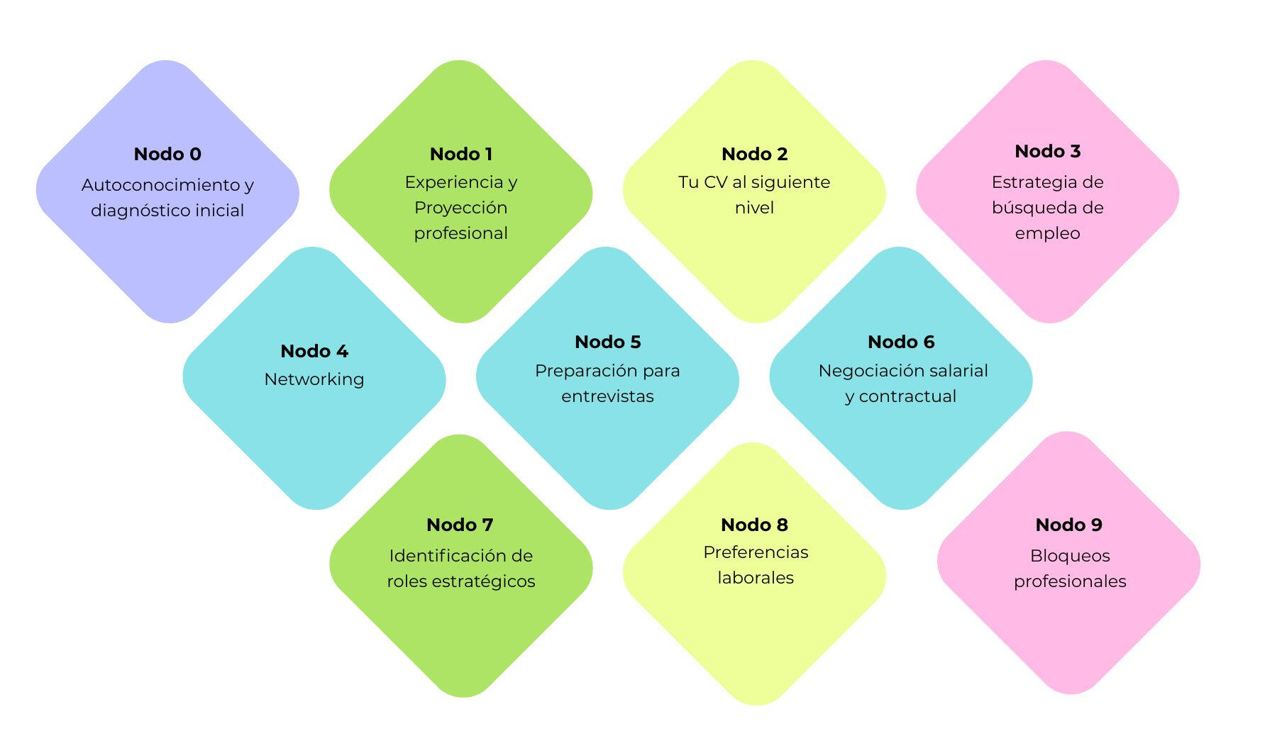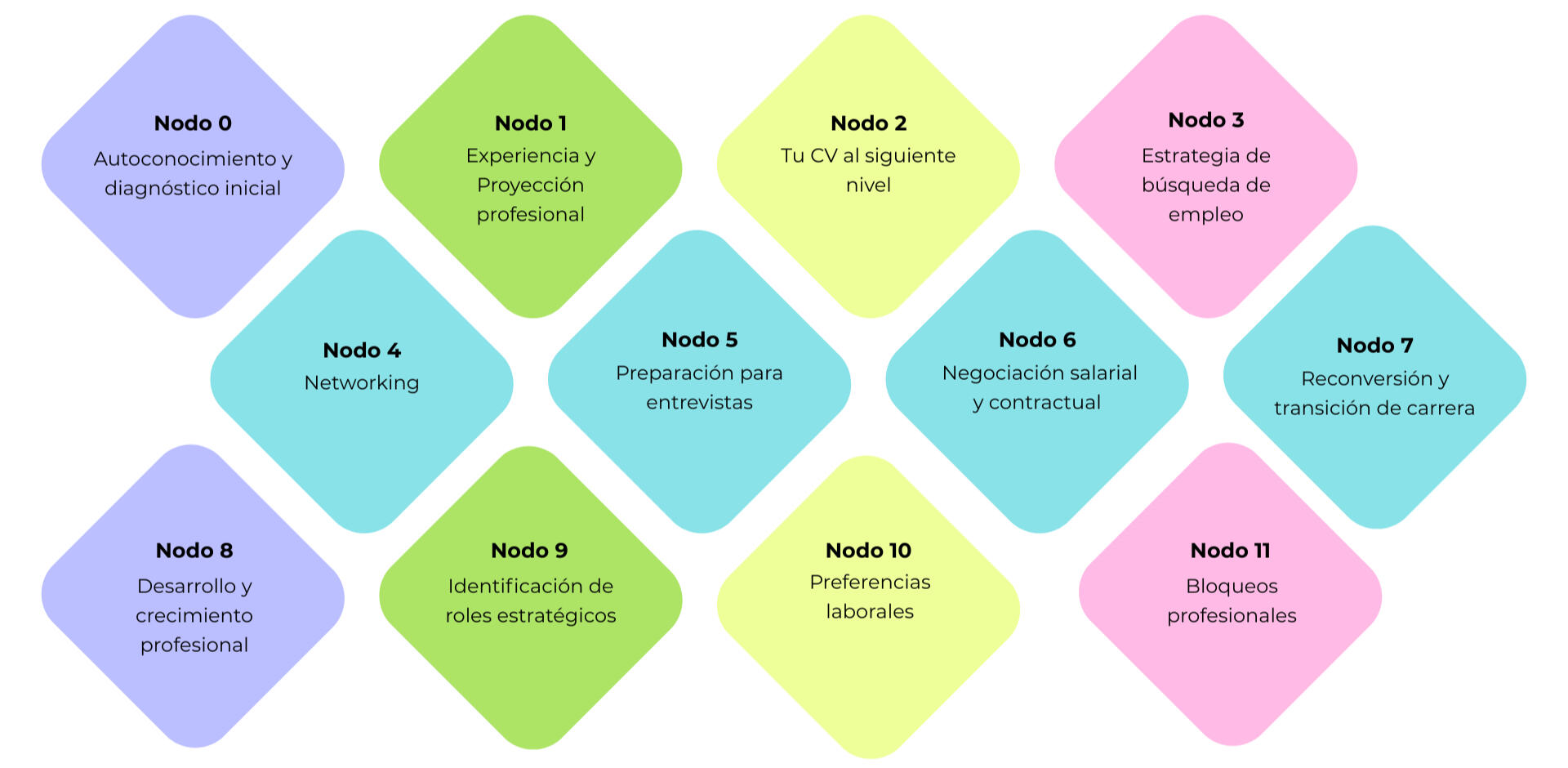 Nodos Prioritarios de mejora: Identifican las áreas de tu perfil que hoy requieren mayor atención y que, al trabajarlas, pueden generar el mayor impacto en tu empleabilidad.